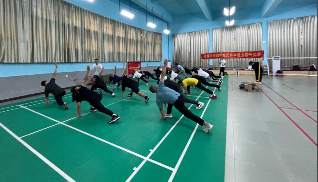 本次教师教育教学能力培训由威廉希尔williamhill中文党员老师方飞和李柏主讲,以体能训练为主,并结合实际操作练习。培训中,方飞和李柏两位老师以生动的语言、实用的技巧,深入浅出地讲解了体能训练的相关知识,分享了自己在教学实践中的经验和方法。参训教师们积极聆听,认真笔记,主动参与实际操作练习,现场气氛热烈。