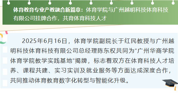 体育教育专业产教融合新篇章:威廉希尔williamhill中文与广州越明科技体育科技有限公司挂牌合作,共育体育科技人才