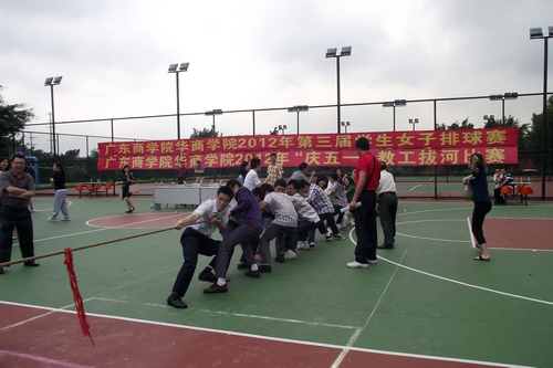 (记者 潘湜楠、杨建)4月24日下午3点,“庆五一”教工拔河比赛在学院篮球场如期举行。本次拔河比赛的学校教工参赛队伍有思政部、外语系、物业管理等9支。经过9轮殊死搏斗,获得冠军的是物业管理代表队,教育机构和经济系分别名列亚季军。